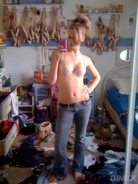 Спортивная нимфа, будучи в ванной комнате, захотела немного позабавиться и, расположившись перед зеркалом, начала снимать с себя вещи. Избавившись от майки, бестия сделала селфи упругой груди, а затем продолжила раздеваться. Оставшись полностью голой, искусительница продолжила фотографировать идеальное тело.