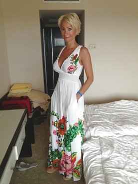 Мамка с черными волосами устала от стандартной сексуальной жизни и захотела поиграть в интимные ролевые игры. Она надела на себя эротичные чулки в сеточку и стала позировать в черных трусиках лежа на кровати. Бабенка корчить из себя хитрую кошечку и строит глазки партнеру, который снимает её на камеру. На протяжение всего сета бабенка только несколько раз обнажила вагину и засветила сиськи, видимо полное оголение не ходило в её сценарий.