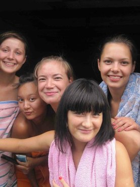 Рыжеволосая жительница деревни любит приходить на каменистый берег реки, где можно раздеться до купальника и позагорать без лишнего внимания к своей персоне. Увидев, что рядом совершенно нет других людей, девушка не ограничилась раздеванием до пестрого бикини. Она сняла с себя лифчик и обнажила также промежность, игриво расставив ножки и немного засветив половые губки.
