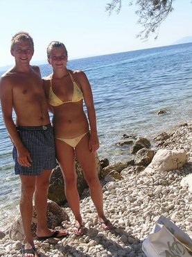 Голенькая девушка с черными волосами заплетенными в две смачные косички купается в волнистом море. Девушку не пугает приближающийся шторм, она смело плескается в крутых волнах. От прохладной воды её маленькие сиськи скукожились ещё больше, но все равно выглядят сексуальными и возбуждающими. Девка во время позирования так же засветила вагину.