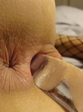 Худощавая блондинка садиться жопой на огромный резиновый хер
