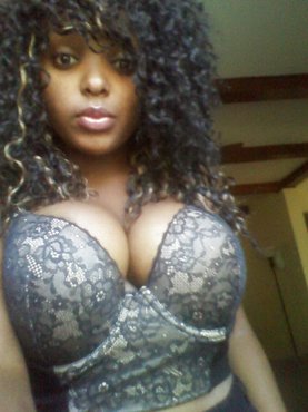 Длинноволосая негритянка с большой грудью фотографируется в спальне