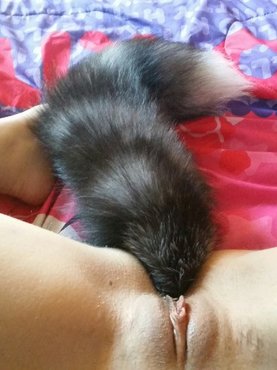 Голая телка с пушистыми хвостами в анальной дырке
