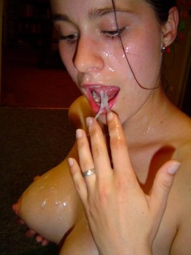 У блондинки течет сперма изо рта на дойки с пирсингом после траха